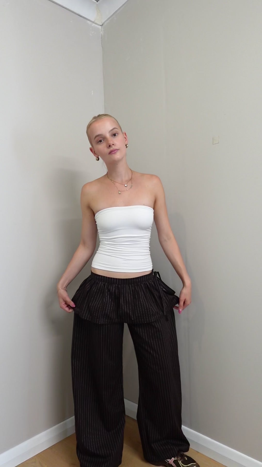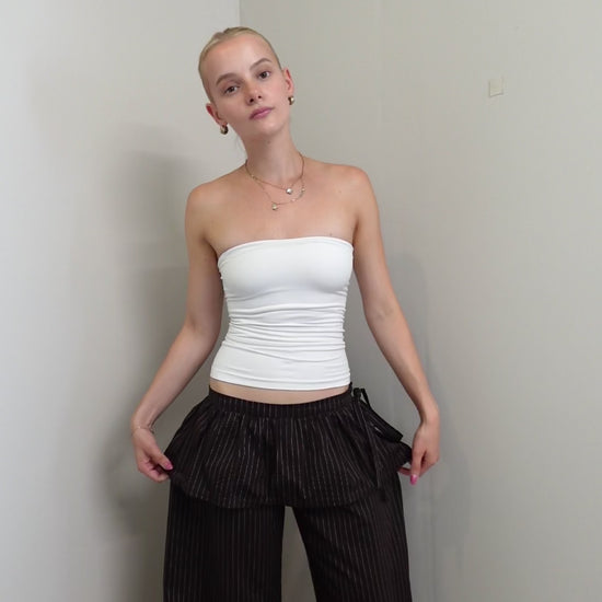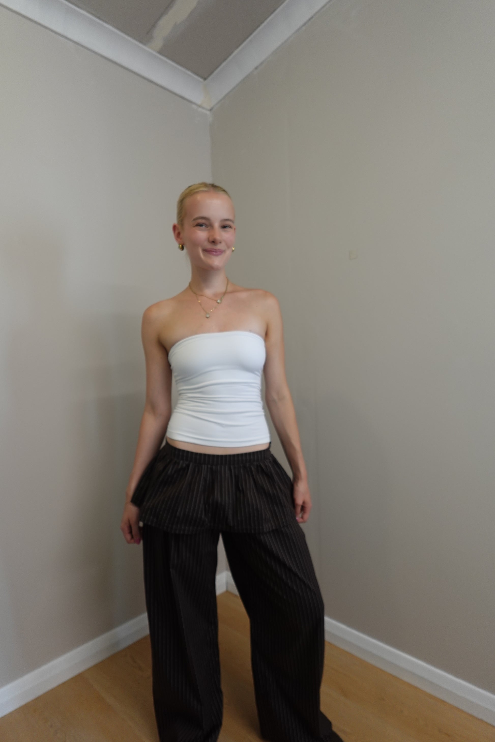 A wide-leg suiting pant featuring a built-in skirt detail at the waistband. This overlay is a play on layering and draping, which elevates this simple yet chic low-rise pant. Make it a set by pairing with our Lila Top.